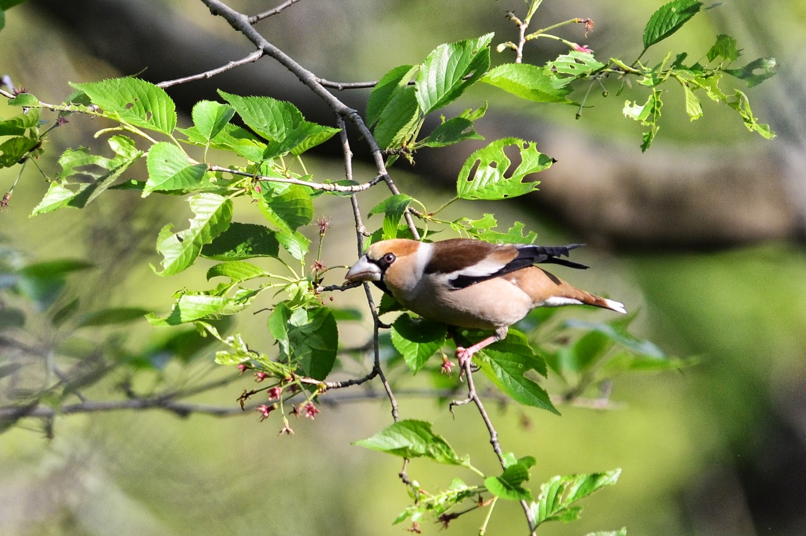 One daring little bird stopping right in front of the lens to pick up its favorite seed