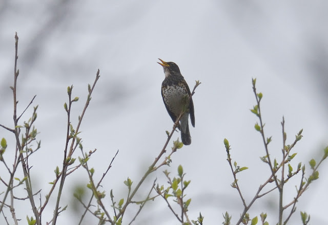 Japanese Thrush, クロツグミ There were 3 birds singing at the top of trees on my walk