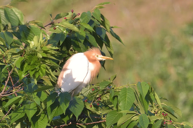 Still young and not the most handsome Pond Heron, with hardly any color on his feathers and a drab expression on his face. I thought the purple Renge flowers would cheer him up a bit.