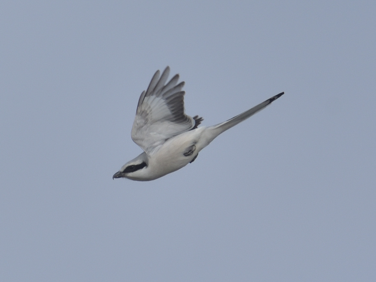 Occasional winter visitor to Kyushu, the Chinese Grey Shrike, オオカラモズ
