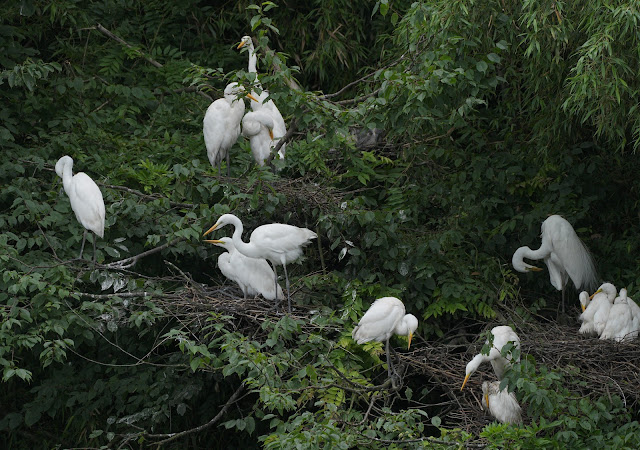 Driving through Kumamoto's country side, I happened upon this place were many herons and egrets were nesting on top of each other on what looked like a small island-type bit of land. Mostly Great Egrets and some Grey herons, but also Nightherons and Little Grebes. Such a lively scene. I could just sit there and watch it all day long...